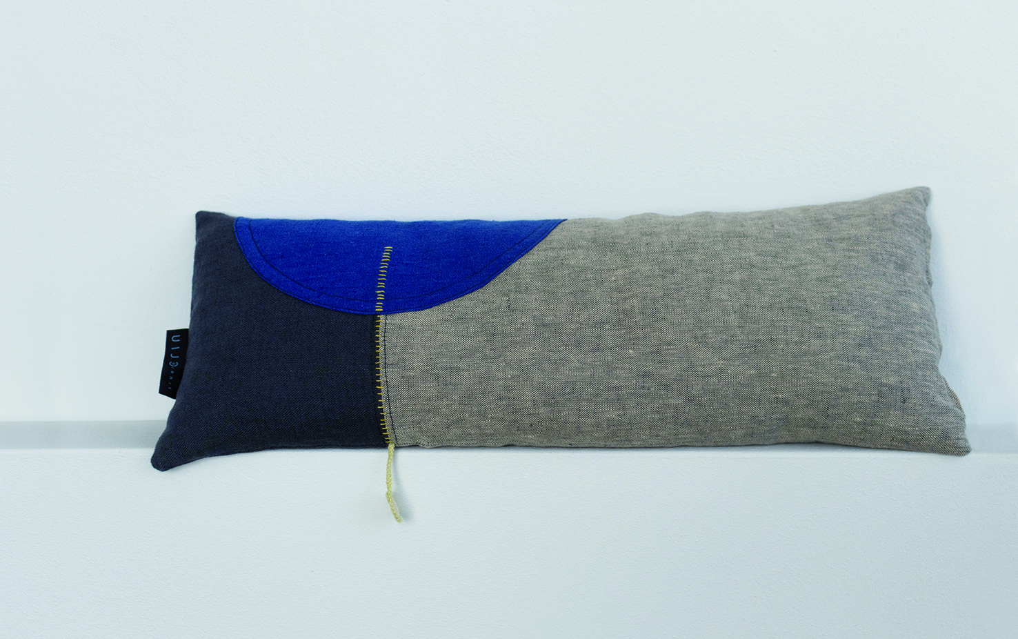 Kussenhoesjes gemaakt in o.a. linnen bombazijn met gerecyclede denim, linnen keper en biokatoenen ribslint. Verrijkt met handbordures en het Crin-zegeltje.